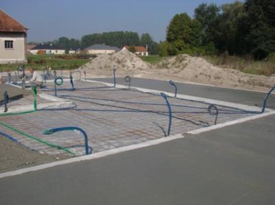 Fouilles de 0,50 x 0,30. Semelles renforcées par armatures type ELS (Armature par 6 fer-tor de 8 avec cadre), Béton type B25 ( 350 kgs au m3).